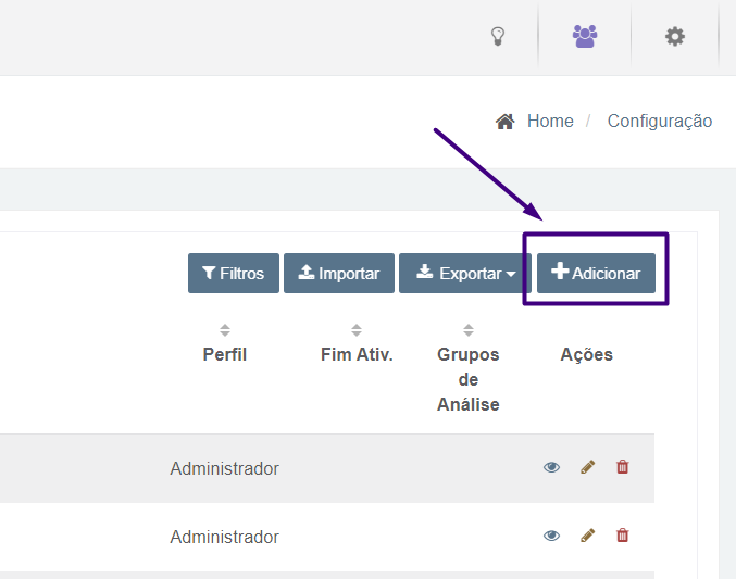 Clique no botão adicionar para realizar o cadastro de um usuário.