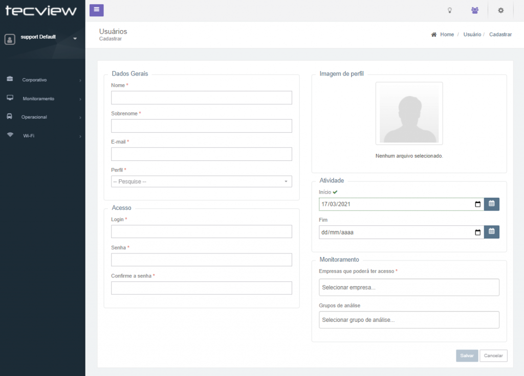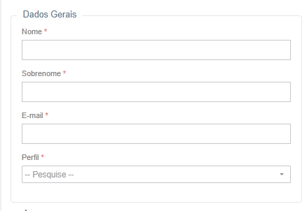 Perfil: Perfil de acesso do usuário (Clique aqui para apender a cadastrar os perfis).