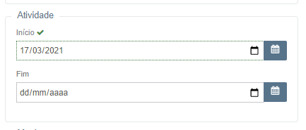 Fim: Data limite na qual o usuário terá acesso ao sistema, sendo assim, após essa data o usuário não terá mais acesso ao sistema.