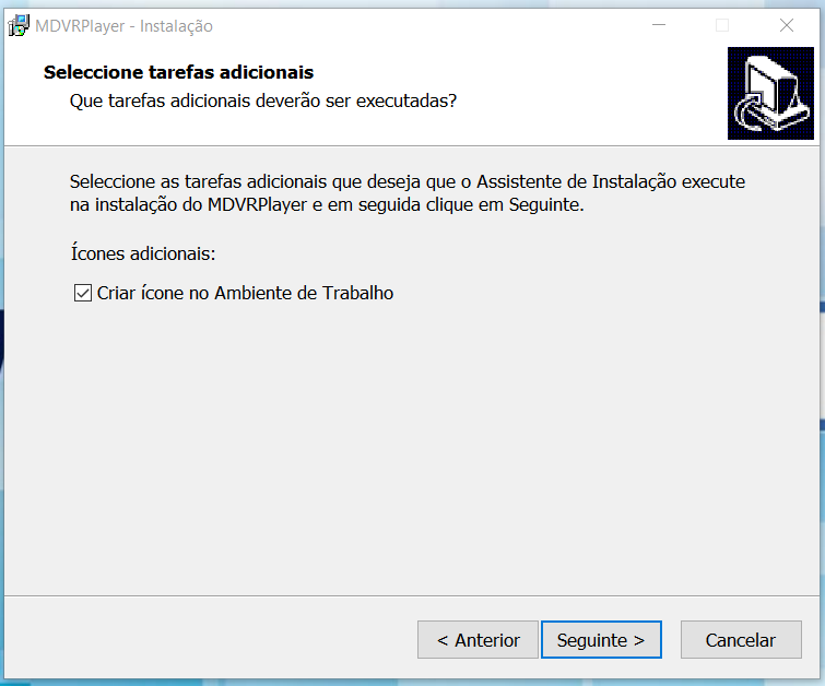 Selecione se deseja criar um ícone de atalho na Área de Trabalho e clique novamente em Seguinte.