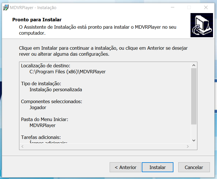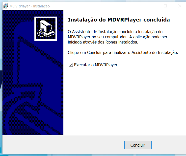 Selecione se deseja Executar o MDVRPlayer ao finalizar a instalação e clique em Concluir.