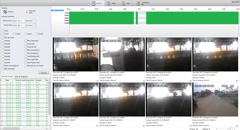 Na time-line será possível visualizar em modo gráfico a quantidade de gravação do período de 00:00 as 23:59 de uma dia.