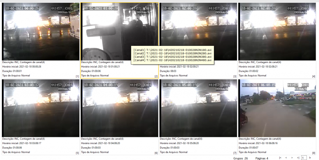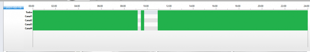 Será preenchido de verde o período que possuir gravação e a ausência das imagens será representado por lacunas no gráfico.