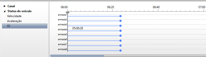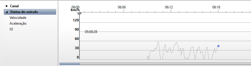 Abaixo dos botões de manipulação serão exibidas as informações referente a Velocidade, Aceleração e I/O capturadas nos veículo.