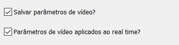 Marque a check box se deseja Salvar parâmetros de vídeo e Parâmetros de vídeo aplicadas ao realtime.