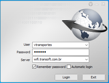 Ao clicar para abri-lo, insira o nome do usuário, senha e endereço de origem do servidor respectivamente, após inserir as credenciais, clique em Login.