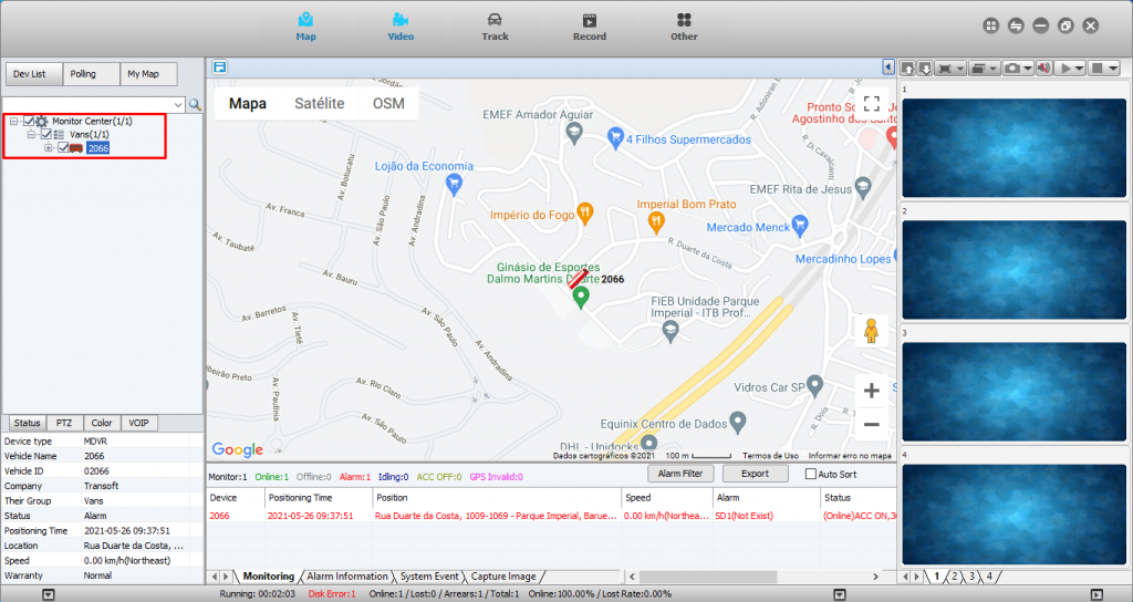 Ao abrir o IVMS você irá identificar seu veículo abaixo do ícone Monitor Center.