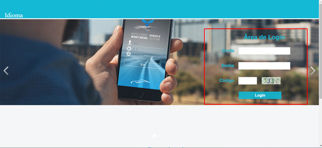 Após Salvar, iremos adicionar o veículo no Plano de Coletas, clique em Saída para voltarmos a página Web e entre com o Nome da Conta do Cliente e a Senha (Fornecidas pelo setor de Infraestrutura e Suporte da Tecnomobile) e insira o Código de Verificação.
