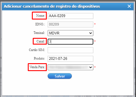 – Insira a Canal a quantidade de Câmeras que o veículo possui.