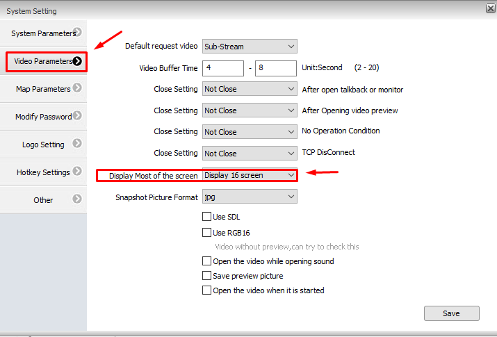 Após, clique em Video Parameters e em seguida, modifique a quantidade de telas em Display Most Of The Screen.