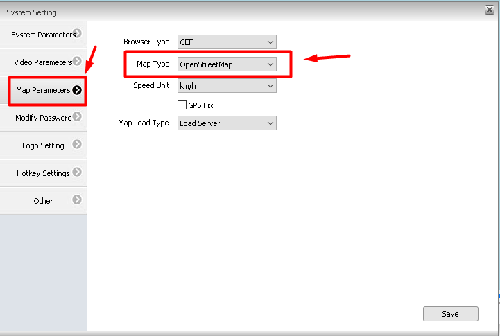 Após, clique em Map Parameters e em seguida, modifique Map Type para OpenStreetMap.